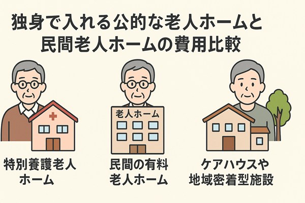 独身で入れる公的な老人ホームと民間老人ホームの費用比較