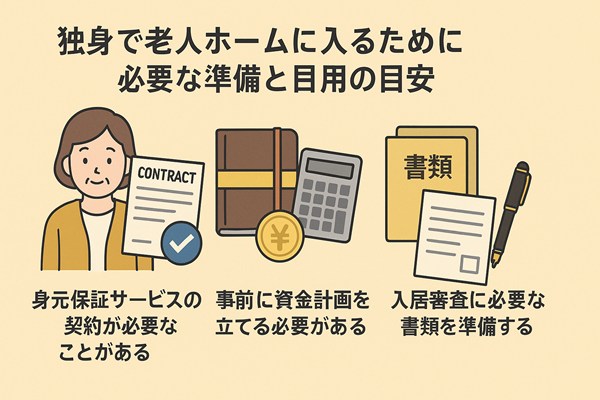 独身者が老人ホームに入るには、費用の相場や必要な準備、保証人問題など、事前に理解しておくべきことが多くあります。