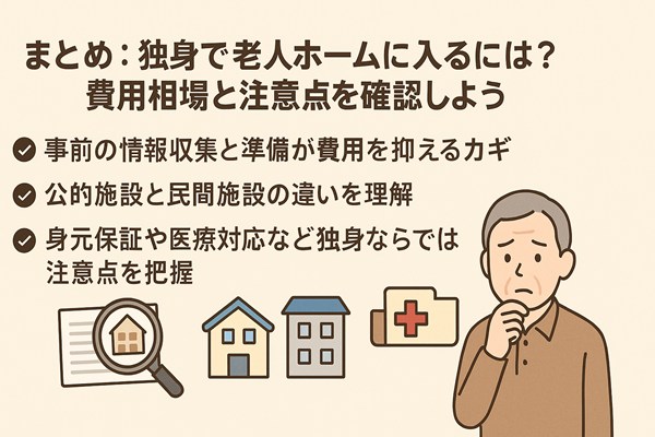 まとめ:独身で老人ホームに入るには?費用相場と注意点を確認しよう