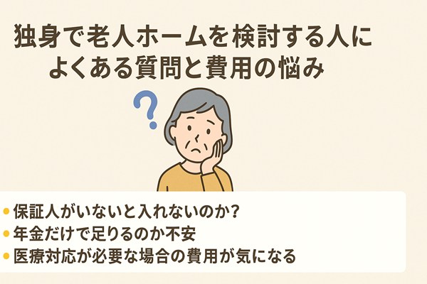 ここでは、独身者が老人ホームを検討する際によくある疑問や費用面での不安について答えます。